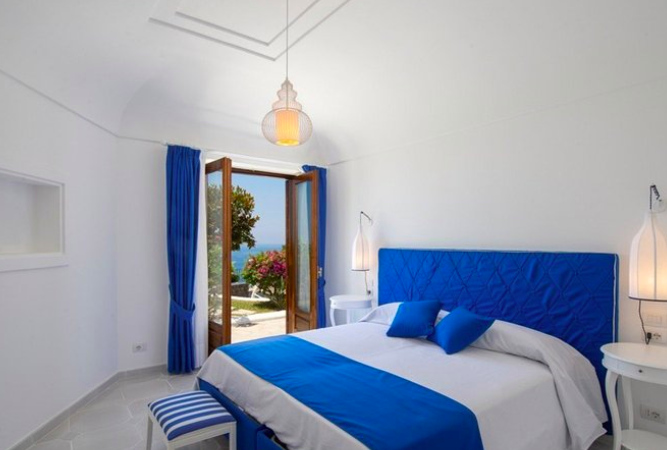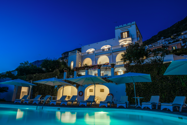 Notre villa est une opulent option lorsque vous choisissez où vous localiser pendant votre séjour à Amalfi. Avec la propriété s’étendant sur quatre étages, vous pouvez trouver des hébergements come une piscine à débordement chauffée, des pianos et des chambres décorées avec des fragments originaux de colonnes et des vestiges romains. Ce manoir se marie parfaitement avec l’environnement naturel, la maison est un véritable bâtiment de style Amalfi: tout blanc avec des fenêtres et des colonnes cintrées.