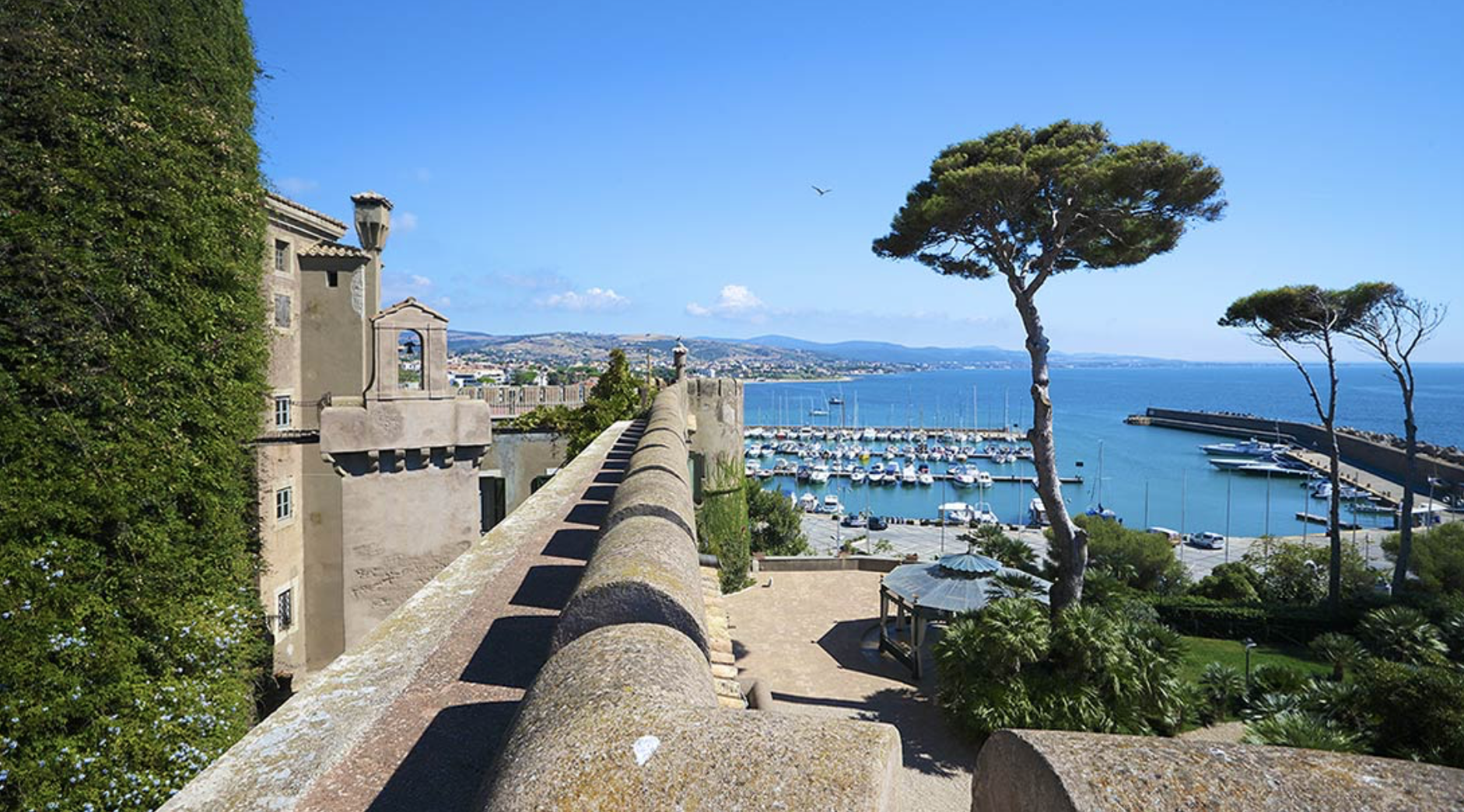 Imaginez une église romantique, une cour intérieure qui rappelle les atmosphères d’antan et une belle terrasse surplombant la mer.