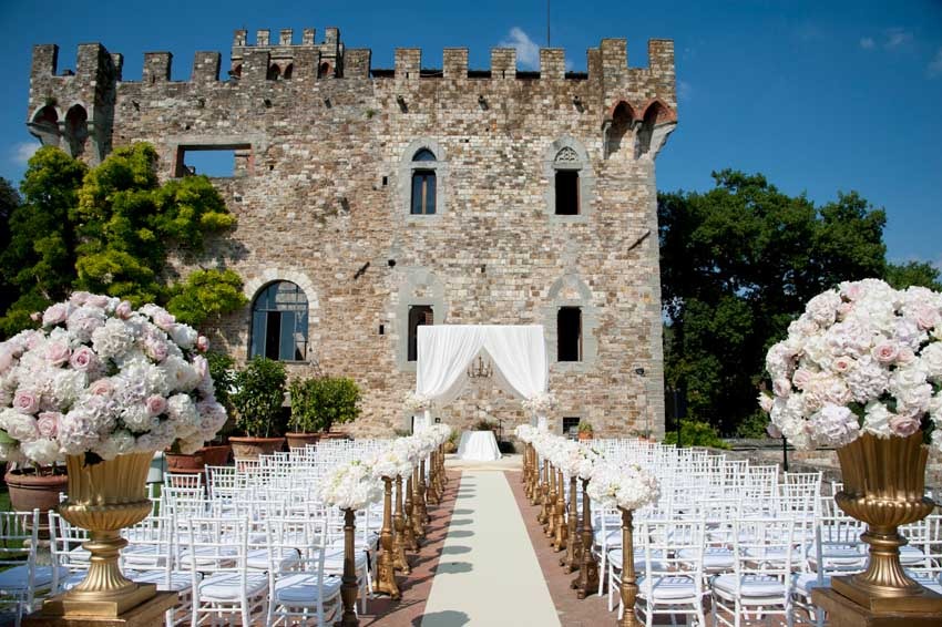Non loin de la ville de Fiesole. Il est possible de diner au château et de le réserver pour des cérémonies. A noter que la terrasse du château dispose d’une superbe vue sur Florence.