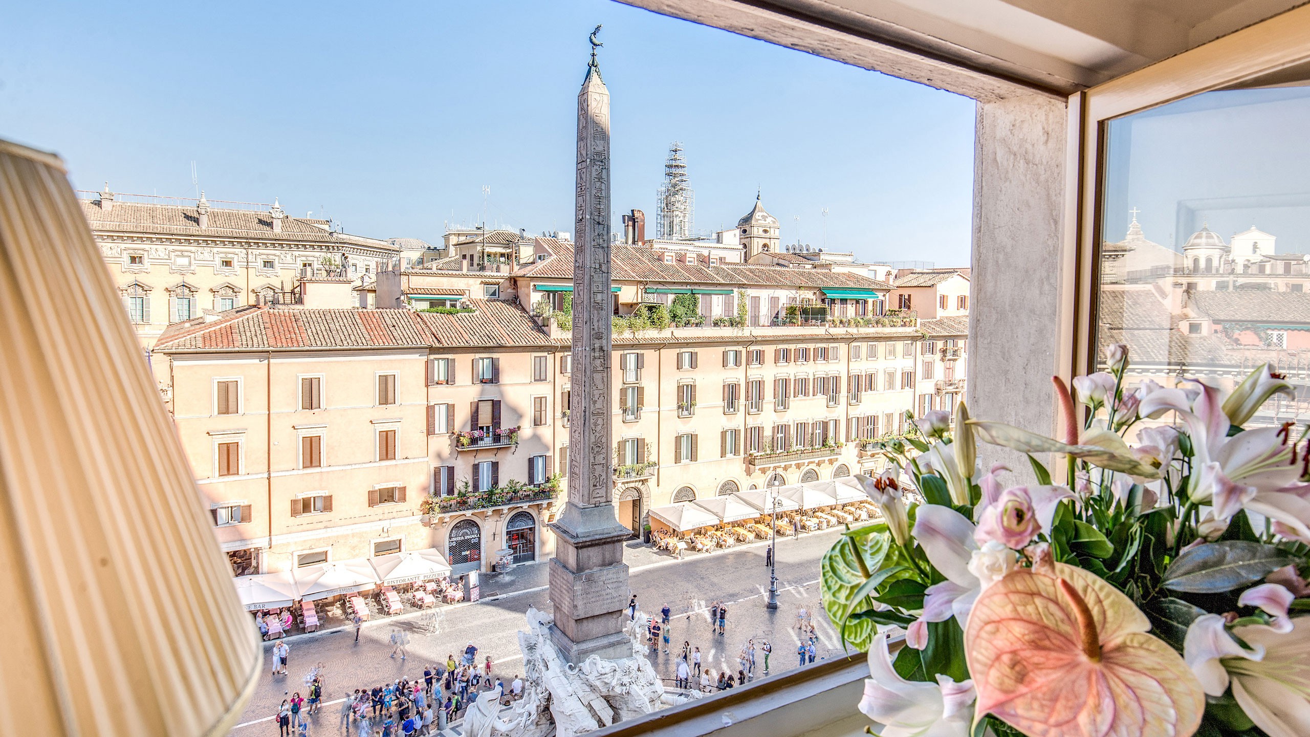 Ciao! Aujourd’hui, nous aimerions partager avec vous un autre endroit fantastique à Rome. Ce lieu de mariage étonnant est situé près du centre de Rome et est l’un de nos préférés. Ici, vous pourrez passer un séjour dans une chambre avec une vue imprenable sur la Piazza Navona. Si la vue ne suffit pas à vous couper le souffle, nous pouvons également vous aider à trouver un dîner sur l’une des belles terrasses. Si vous cherchez un endroit où vous pouvez avoir une vue sur Rome et un emplacement idéal dans la ville, c’est parfait!