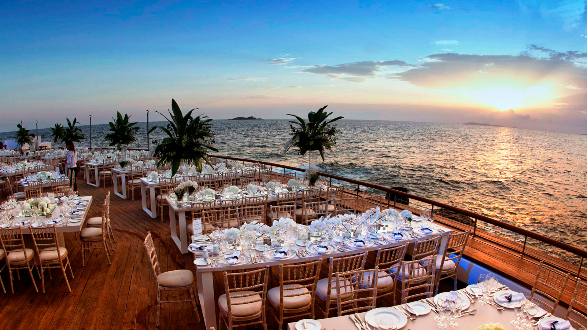 Envolez-vous avec vos invités pour la Grèce et nous vous assurons que vous ne serez pas déçus. Le bleu azur de la mer, le soleil brûlant, le blanc immaculé des maisons, les saveurs authentiques de la cuisine grecque, tout est réuni pour un événement intime, unique et inoubliable.