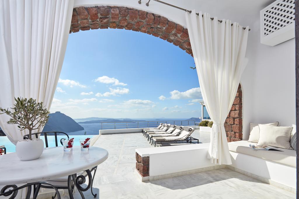 Situé dans la splendide localité de Imerovigli, cet hotel-boutique 5 étoiles est un réel diamant dans la roche. Un lieu d’exception entre terre et mer, au cœur de la nature et suspendu dans le ciel bleu azur de l’île. Imaginez-vous avec votre famille et vos amis autour d’un délicieux banquet, le parfum de la mer, en admirant un sublime coucher de soleil. Spa, piscine à débordement vers l’infini, danser le Sirtaki autour de la piscine, danse populaire d’origine grecque que nous aimons tant, espace lounge bar et restaurant dans la falaise, une expérience unique et inoubliable ! Un lieu comme il en existe peu d’autres.
